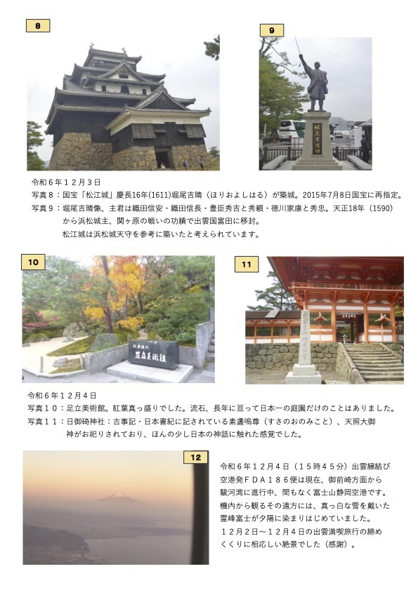 こちらのお客様は、玉造グランドホテル長生閣に2泊されました。とてもホスピタリティの高いホテルです。レンタカーで現地を楽しまれたとのことで良かったです。素敵なお写真までありがとうございました。