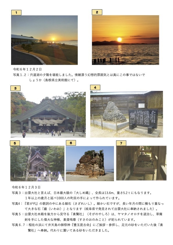 松江エクセルホテル東急→松江城→塩見縄手→稲佐の浜→出雲大社→古代出雲歴史博物館→日御碕神社→日御碕灯台→出雲神々縁結びの宿 紺屋